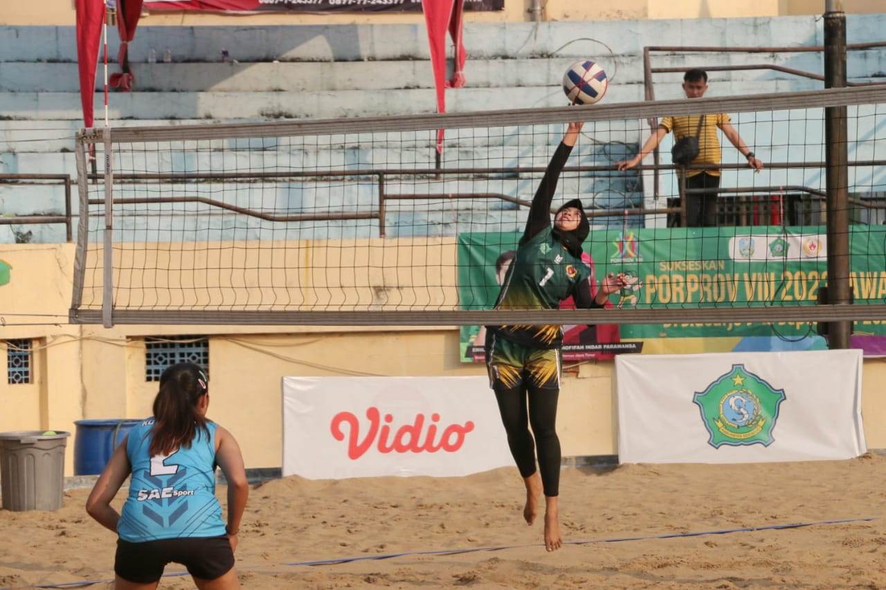 Cabang olahraga voli pantai Porprov VIII Jatim nomor beregu putri telah menyisakan empat dari sembilan tim yang bertarung di nomor ini. Empat tim beregu putri yang masih bertahan adalah Tim Kabupaten Sumenep, Kabupaten Malang, Kota Malang dan tuan rumah, Kabupaten Sidoarjo. Mereka akaan saling pada semifinal yang akan digelar Jumat (15/9/2023) di GOR Voli Pantai Sidoarjo.