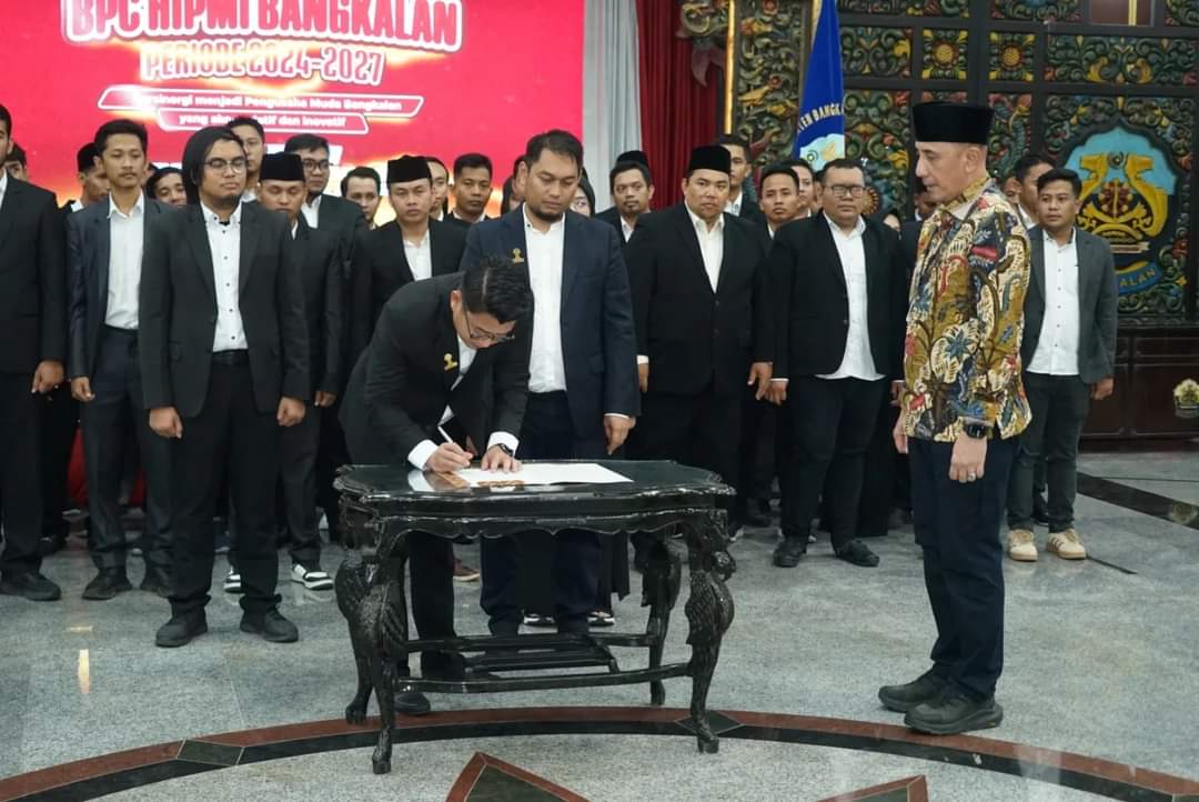 Pelantikan yang dilaksanakan di Pendopo Agung ini dilakukan oleh Ketua BPD HIPMI Provinsi Jawa Timur, Rois Sunandar Maming, yang melantik secara langsung Ellinas Jalusamya Djatmico sebagai ketua umum BPC HIPMI Bangkalan beserta segenap pengurus.