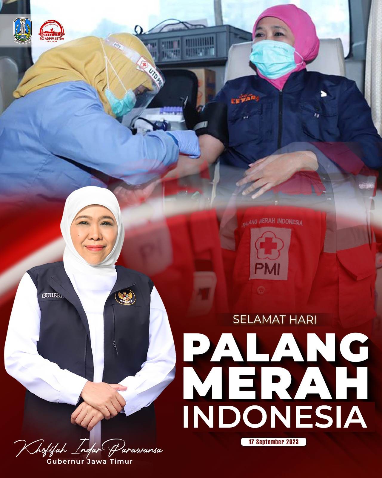 Gubernur Jawa Timur, Khofifah Indar Parawansa, mengajak masyarakat untuk menolong sesama dengan aktif melakukan donor darah. Ajakan ini disampaikannya bertepatan dengan Peringatan HUT ke-78 Palang Merah Indonesia (PMI) yang jatuh pada hari ini, Minggu (17/9/2023).