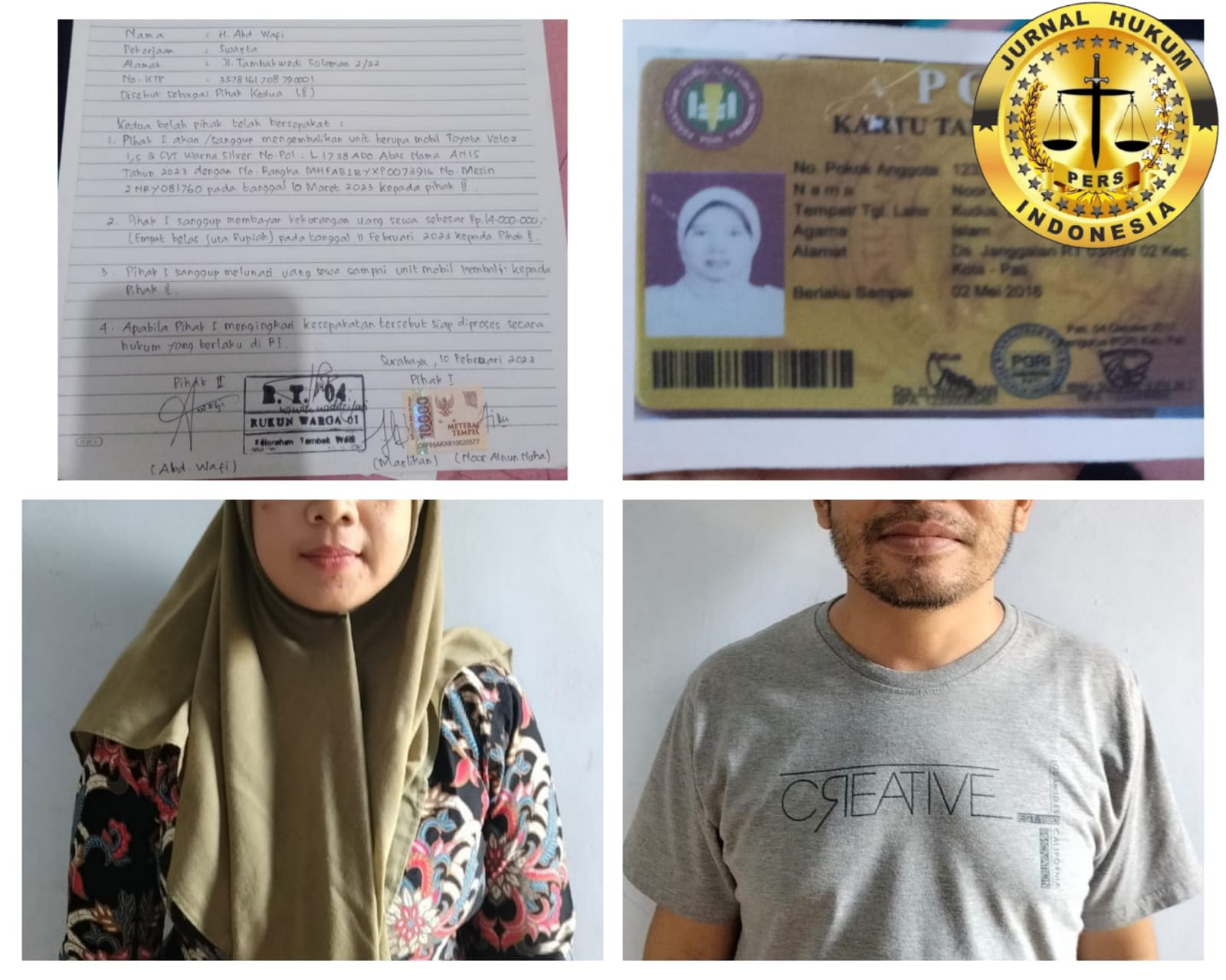 Seorang oknum guru berinisial NAN bersama suaminya Maslikan dilaporkan telah menggelapkan satu unit mobil rental milik warga Surabaya sejak tahun 2022 tanpa menyelesaikan pembayaran.