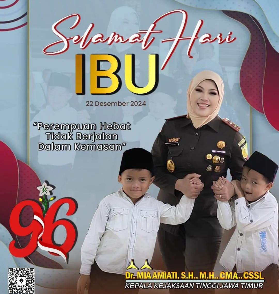 Kepala Kejaksaan Tinggi (Kajati) Jawa Timur, Dr. Mia Amiati S.H., M.H., CMA., CSSL., memaknai khusus Peringatan Hari Ibu Nasional ke-96, yang diperingati setiap tanggal 22 Desember.