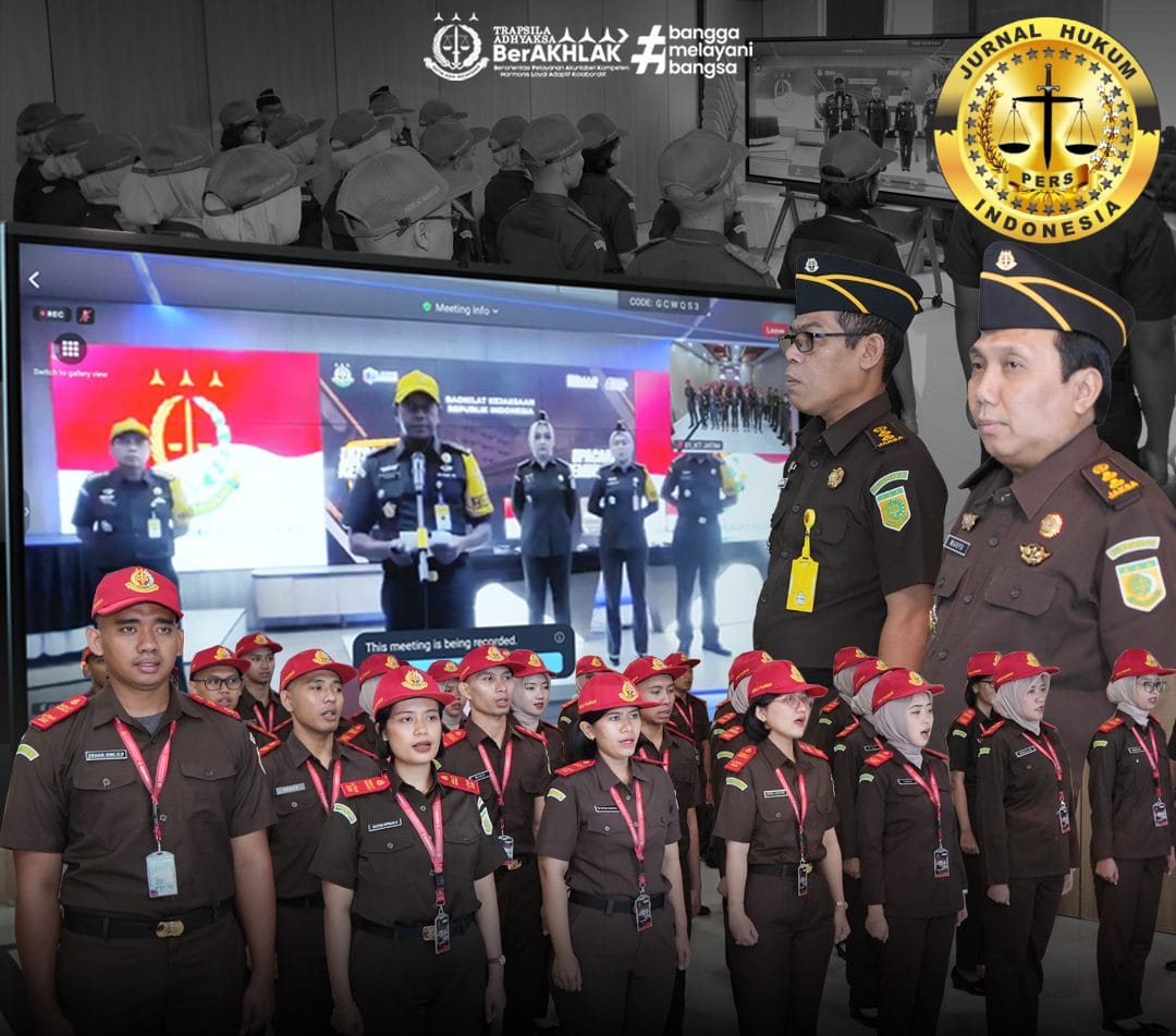 Kepala Bagian Tata Usaha (Kabag TU) Kejaksaan Tinggi Jawa Timur, Wahyu Hidayatullah, S.H., M.H., didampingi Kasubbag Kepegawaian serta para CPNS, mengikuti Pembukaan Pelatihan Dasar (Latsar) CPNS Kejaksaan RI Tahun 2025 secara daring di Aula Kejati Jatim, Rabu (1/10/2025).