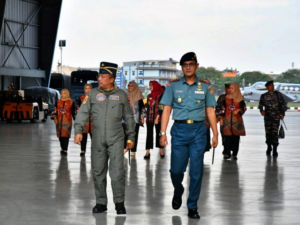 Komandan Pangkalan Udara Angkatan Laut (Danlanudal) Jakarta, Letkol Laut Laut (P) Rai Terianom didampingi Ketua Cab. 6 PG. Puspenerbal, Ny. Meiza Rai Terianom, menyambut kedatangan Panglima Komando Armada II (Pangkoarmada II), Laksamana Muda TNI Ariantyo Condrowibowo dan Ketua Daerah Jalasenastri Armada II (KDJA II), Ny. Dian Ariantyo Condrowibowo, Kamis (7/11/2024).