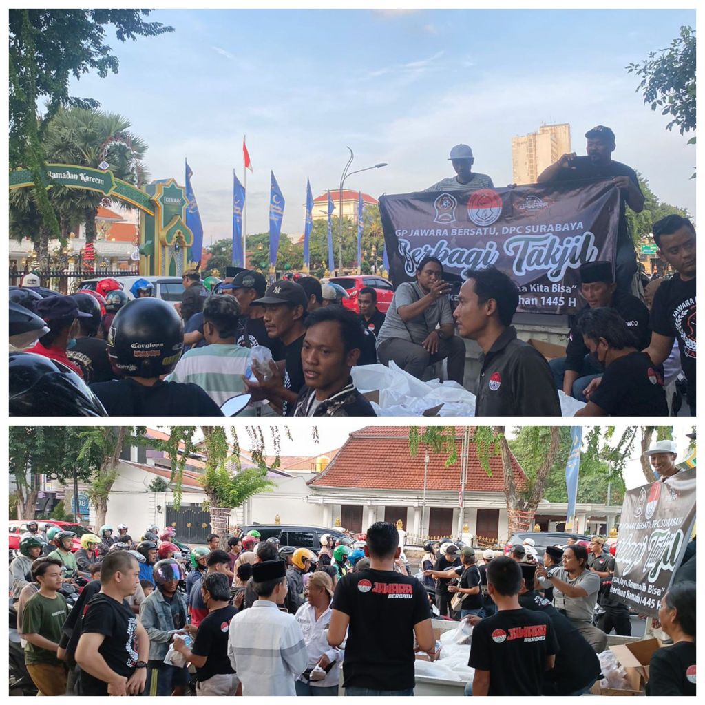 Bulan Ramadhan merupakan bulan penuh berkah dan ampunan, menjelang waktu berbuka puasa di bulan ramadhan Ormas Gerakan Pemuda Jawa Madura Bersatu (Jawara) menggelar bagi takjil kepada masyarakat dan pengendara motor, Minggu 24/03/2024 sore.