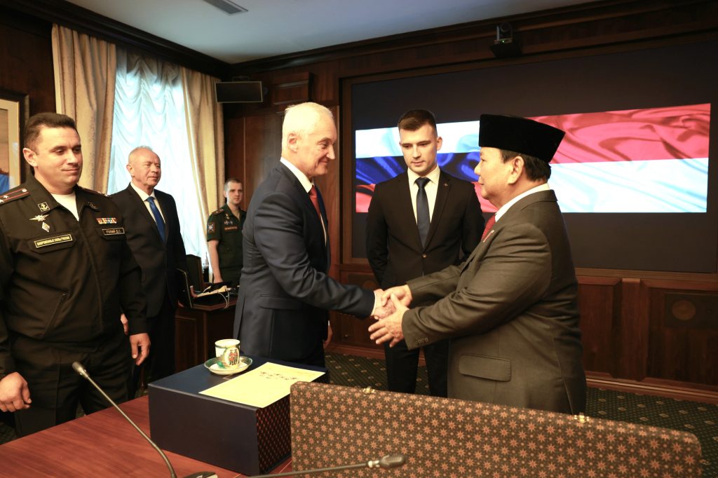 Menteri Pertahanan Republik Indonesia (Menhan RI) Prabowo Subianto melakukan pertemuan dengan Menteri Pertahanan Federasi Rusia, Andrey Belusov, di Rusia, Rabu (31/7).