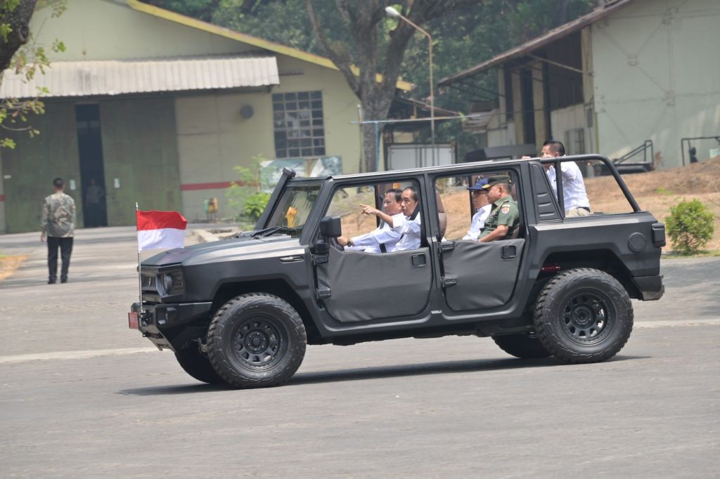 Presiden beserta rombongan kemudian menggunakan Ranops Maung meninjau fasilitas produksi alat berat, kendaraan khusus, serta meninjau produk unggulan baik pertahanan maupun produk industrial lainnya. Selain produk dari PT Pindad juga ditampilkan motor listrik buatan PT LEN Industri (Persero).