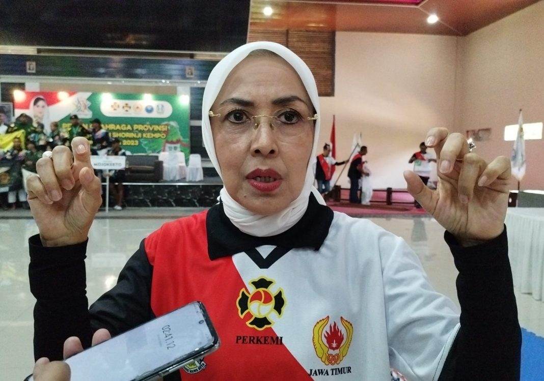 Ketua Umum Pengprov Perkemi Jatim, Iswachyu Dhaniarti, di Gelora Abi As’ad Unipdu, Jombang.