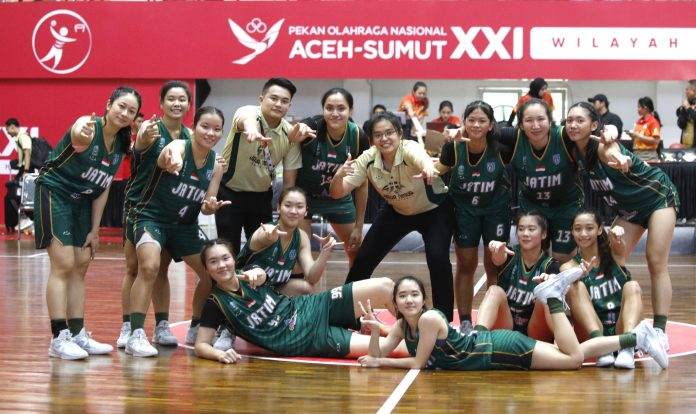 Tim basket putri Jawa Timur (Jatim), mengawali fase grup PON XXI Aceh-Sumatera Utara dengan hasil positif. Mereka menaklukkan salah satu tim unggulan DKI Jakarta 73-54 di GOR Harapan Bangsa, Banda Aceh, Senin (2/9/2024).