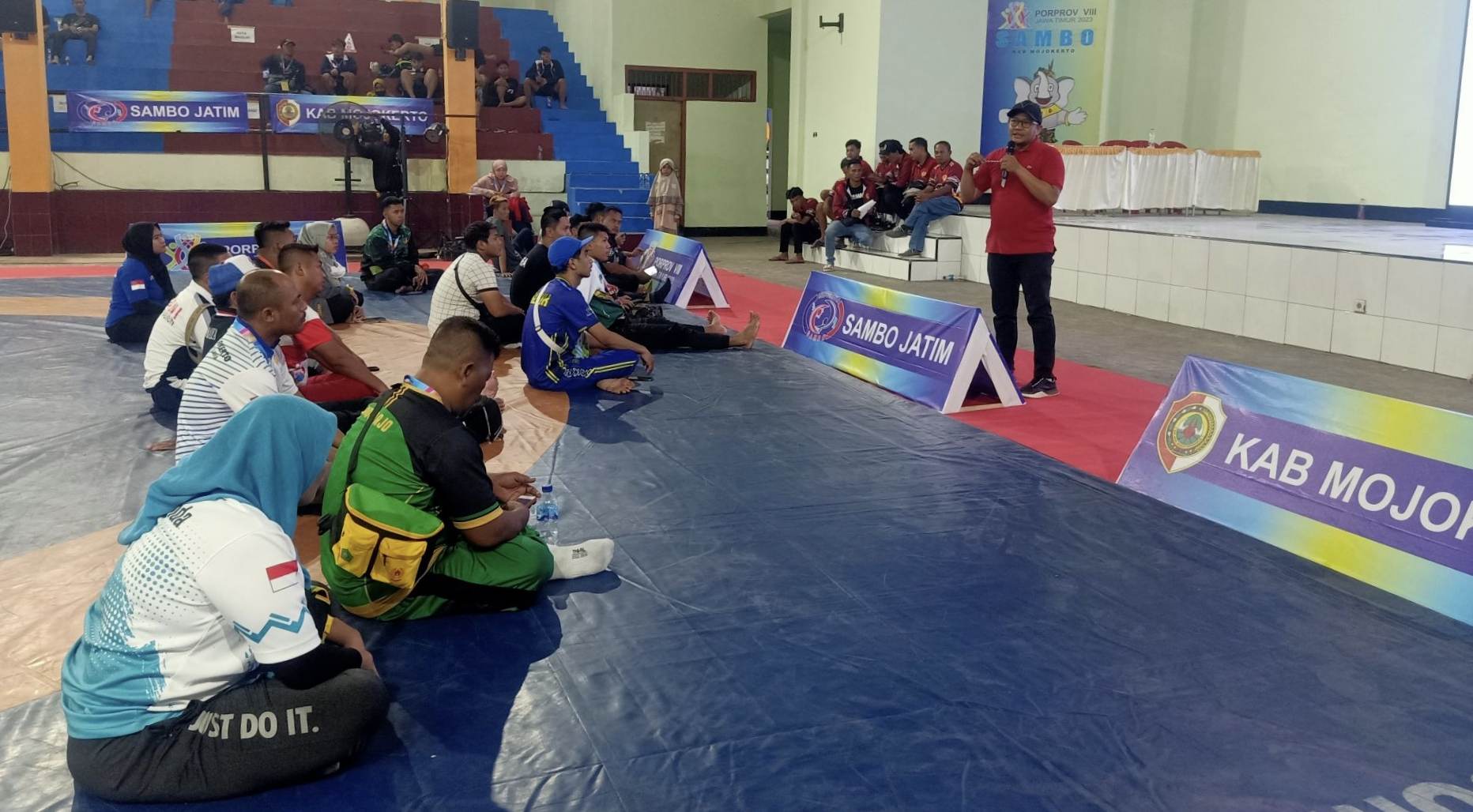 Technical Delegation Cabor Sambo, Raditya saat memberikan breefing kepada peserta 21 kab/kota terkait aturan pertandingan Cabor.