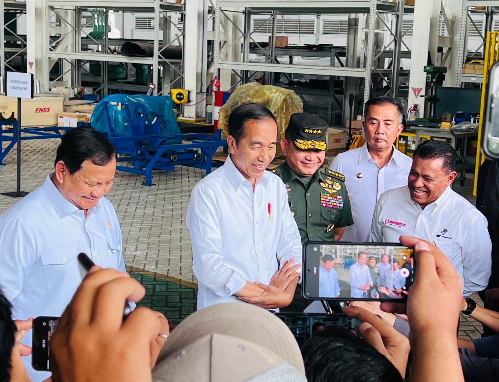 Selain Menhan, turut mendampingi Presiden saat meninjau di PT Pindad diantaranya, Mensesneg, KSAD, Komut PT Pindad, Dirut DEFEND ID, Dirut PT Pindad dan Dirprod PT Pindad.