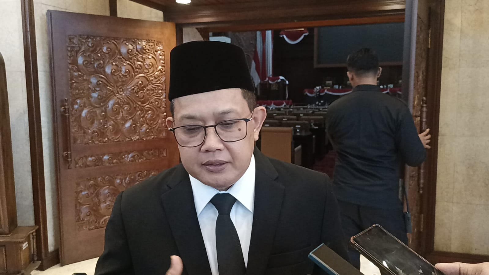 Pj gubernur Jatim, Adhy Karyono usai paripurna di DPRD Jatim. (Pca)