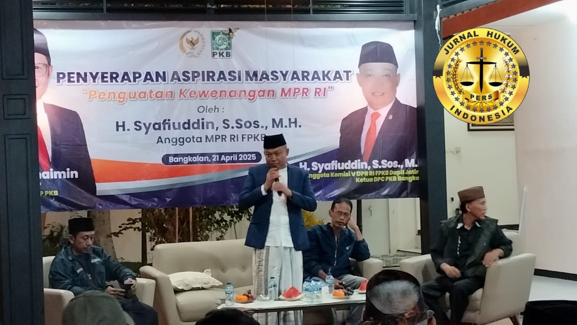 Bertempat di Perumahan Griya Abadi, kecamatan Kota Bangkalan, berlangsung kegiatan reses anggota MPR RI dari Fraksi Partai Kebangkitan Bangsa (PKB), Moh. Syafiuddin, mengangkat tema Penguatan Kewenangan MPR RI. Minggu (25/5)