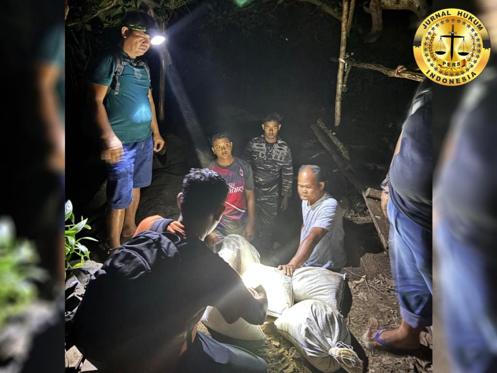 Tidak berselang lama, Tim segera melaksanakan identifikasi dan ditemukan tumpukan karung timah di bawah dermaga kayu yang tertutup terpal hijau. Tim kemudian melaksanakan pembongkaran dan ditemukan tumpukan pasir timah sebanyak 12 karung berada di dalam tanah yang sengaja dibuat untuk mengelabui petugas.